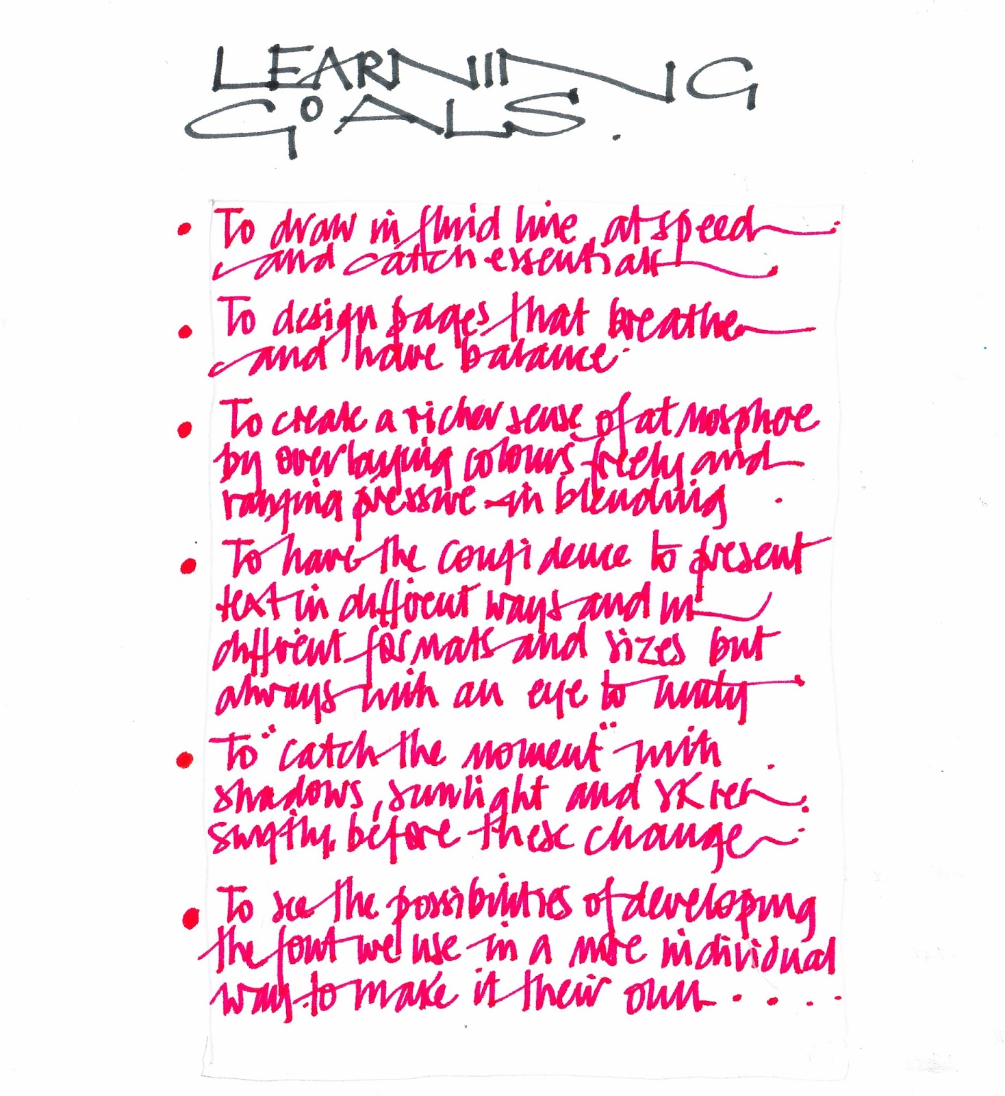 - Final ‘free-style’ drawing ‘capturing the big picture’- using perspective which brings it all together (45 minutes)